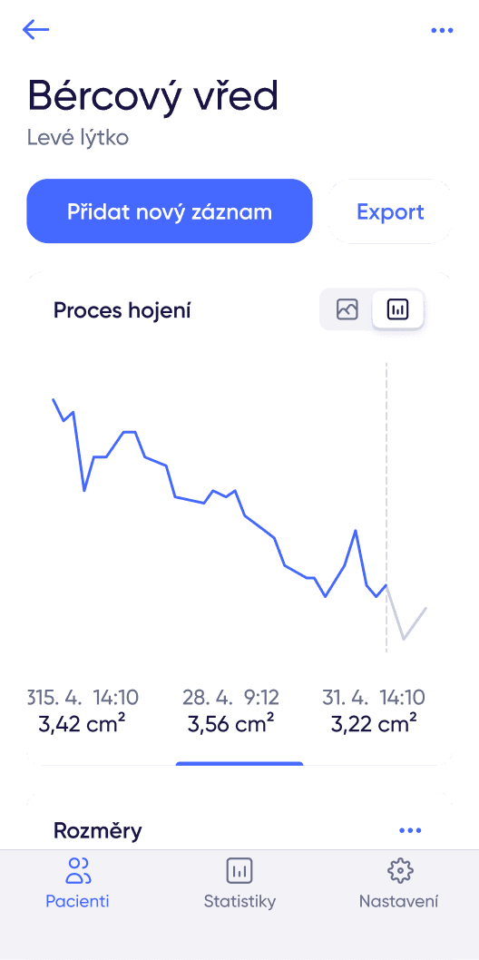 Sledujte vývoj hojení ran svých pacientů